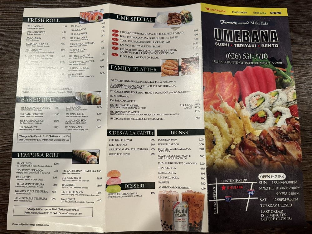 Located in Duarte, California, Umebana offers a delightful journey into Japanese cuisine with a menu that showcases fresh sushi, flavorful rolls, and vibrant salads. This charming restaurant emphasizes quality and presentation, from the elegantly plated sashimi salad to the comforting teriyaki chicken bento.